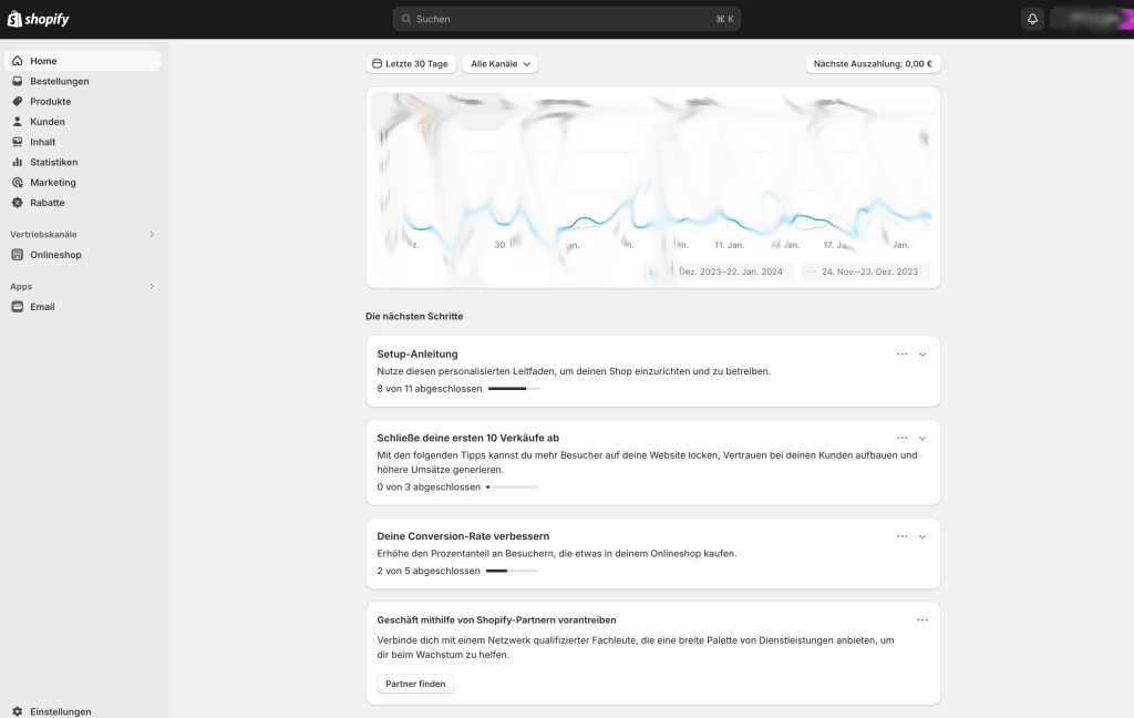 • Das Dashboard dient als Kontrollzentrum, in dem Statistiken, Produktseiten und sonstige Webseitinhalte sowie Besucher:innen/Kunden:innen-Aktivitäten auf einen Blick sichtbar sind.