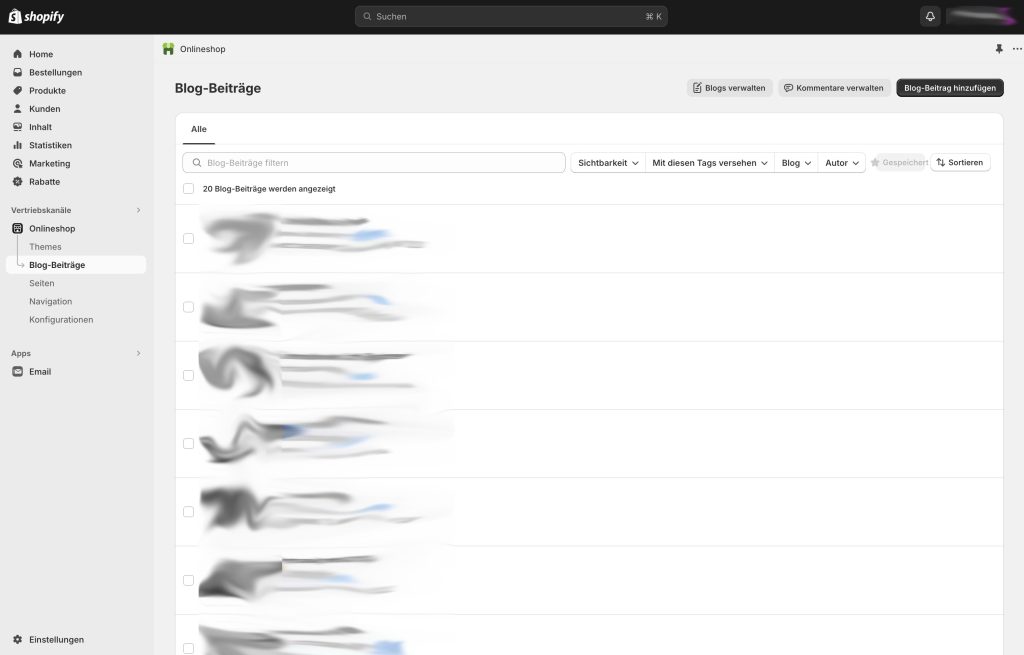 • Zu finden unter Vertriebskanäle > Onlineshop > Blogbeiträge > „Blog-Beitrag hinzufügen“
